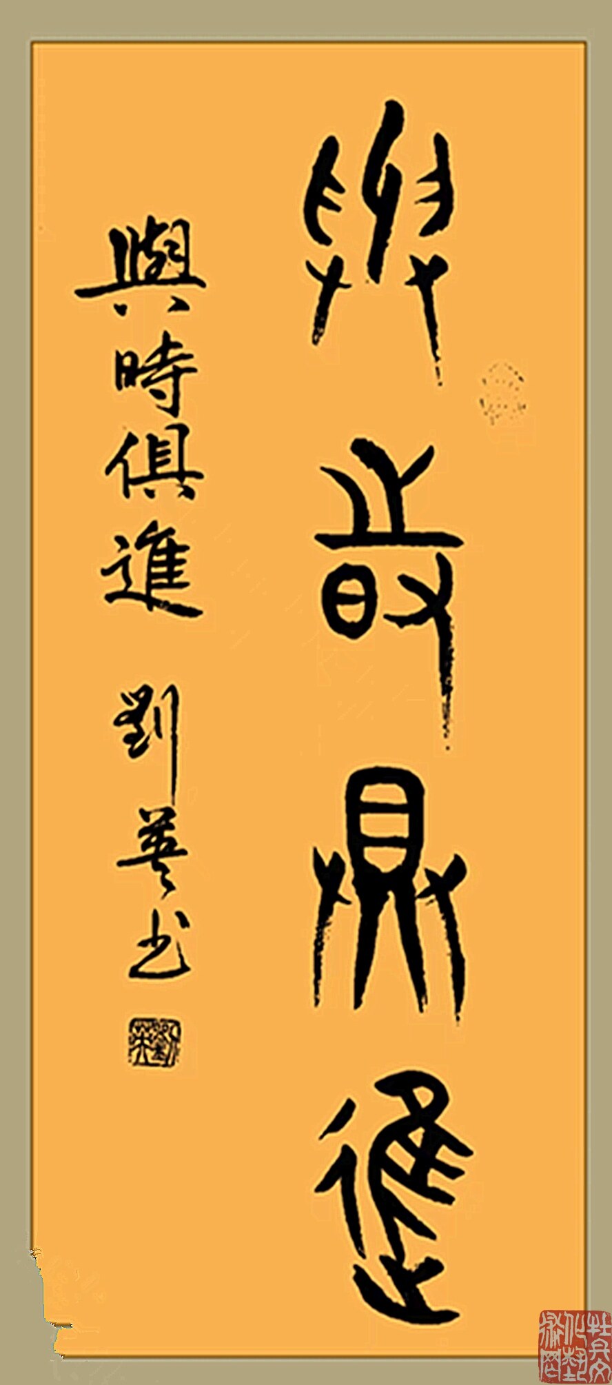 刘英,女,1962年生于济南。其少年时期受文化世家的影响,喜爱书法艺术,学生时期临写颜欧及二王书法,颇有建树,有“书法神童”的美称,成年后仍孜孜不倦,临池不辍 ,特别是近几年学习大篆金文,临习金文书法泰斗蒋维崧的书法作品,取得长足的进步。其取众家之长,钻坚仰高,忘其疲劳,终成一代书法名家。其行楷书法作品骨力遒劲气概凛然;大篆金文作品笔精墨秀、气韵生动;其行草作品字势雄逸,虎卧凤阙,尽得二王风采,其隶书形态完美,情趣多端,充分展示了成熟汉隶的面貌,受到书法同仁的好评。其作品多次参加全国书法大赛并获奖,被外国友人以及省内外名家争相收藏。