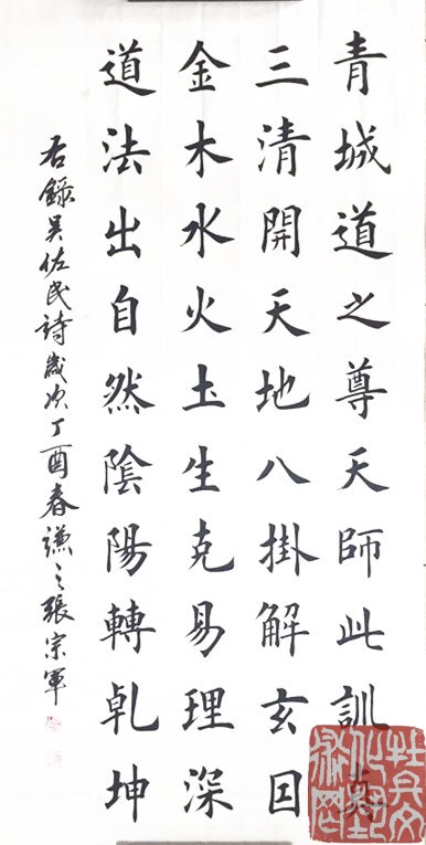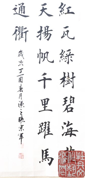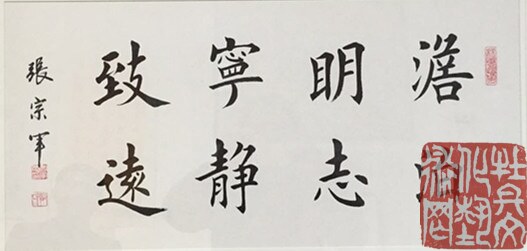 张宗军,字谦之,山东省济南市人。自中学起开始喜欢传统书法,初学颜真卿、柳公权。2014年6月有幸次参加书法家田英章先生举办的特训班。此后连续参加十几届特训班及高研班并获奖。担任第42、50届济南特训班班长,被田英章老师授予佳优秀班长称号。2015年9月随田英章老师去法国访问,被授予法国书画家协会理事。2016年5月,陪同田英章老师去剑桥大学交流访问。获剑桥大学书法协会理事称号。2016年6月取得文化部、人力资源部颁发的高级书法家证书。2016年6月由田英章老师授权,在济南开办“田英章济南书院”,并担任院长。