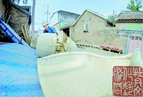 “俺村里以前许多人都靠编笆斗、簸箕为生,但现在就剩下我自己了。”张胜军说,因为不挣钱,没有人再愿意学这门老手艺,他的三个儿子都会,但都不干这个行当。“年轻人外出打工一天就能挣100多块钱,谁还干这啊!”张胜军的话中带着一丝落寞。