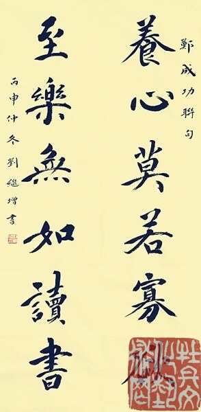刘继增,1962年出生于成武县汶上集镇刘楼村。大学本科毕业。历任教师、公务员。山东省作家协会会员,山东省书法家协会会员,菏泽市作协、书协理事。书法作品多次参加书协、省书协举办的书法展览并获奖,部分作品发表在书法专业报刊和多部精品集,有的被文化、艺术机构收藏。出版个人书法作品选一部。在坚持书法创作的同时,致力于书法理论的研究,在全国各地主要书法专业报刊发表数十篇书法理论文章。其中,一万余字的《三鉴堂随笔》在《钢笔书法》杂志分三期连载,《书家多情》、《书家之情哪里来》、《法度性情两相宜》、《硬笔书法之硬》、《闲话宗派与流派》、《书法创作是“极其残酷而难能的“吗”》、《与你书法啥关系》等数十篇论文在《书法报》、《钢笔书法》、《青少年书法》等权威报刊发表。近几年,应邀为多部书画专集作序。