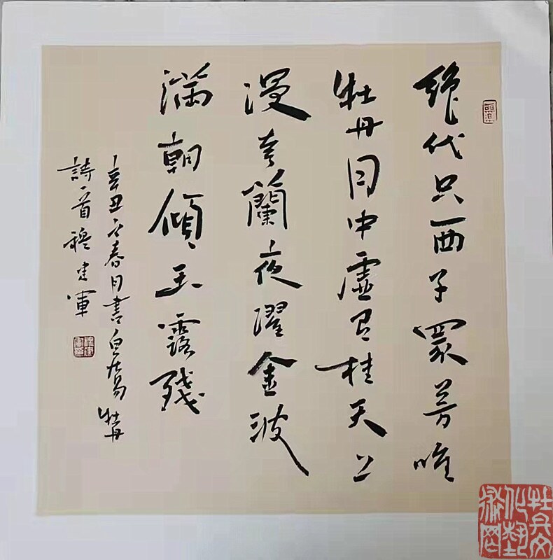 穆建军,号紫雲居士,1974年生人,自幼热爱书画,师从吴慎远、崔庆国、侯玉麟、曹钰诸先生。现为山东省书法家协会会员,菏泽市书协会员,菏泽市书法研究会理事,菏泽市榜书协会理事。2007年由湖南长沙市书协、美协主办的″纪念延安文艺座谈会"全国书画大赛中获一等奖,"2008年书法作品在山东省检察系统书画大赛中获一等奖,2009山东省政法系统书画大赛中获优秀奖,2011年高检全国书画大赛书法作品入展国家博物馆,2009年书法入展第二届洪洞大槐树国际书画艺术展、第三届山西书画艺术大赛,2009入选″中华之光″全国书画展,2009年山东省书协主办″纪念孔繁森同志″全国书法大展中作品被永久收藏,2011年入展书法报社、东莞观音山主办"观音山杯″全国书画大展。2012年山东省城建园林书画大赛中书法作品获三等奖,2014年作品入展第二届山东省书协主办″牡丹奖"双年展,2016年作品入展第三届″牡丹奖"双年展,2018年作品再次入展第四届"牡丹奖"双年展,2019年作品入展第二届李荣海艺术基金会书法大展!