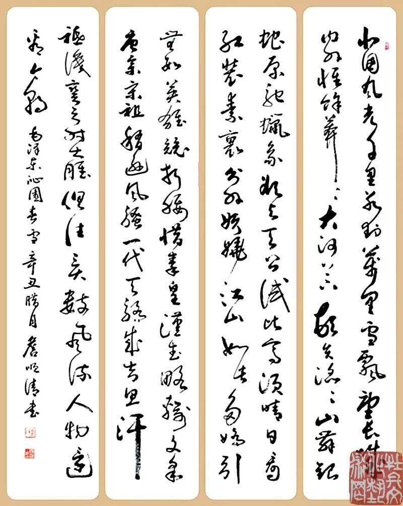 詹顺清自幼酷爱书法,临池把墨、春秋不辍,冬练三九,夏练三伏,勤勉之态令人肃然起敬。学习书法的路上受到多位名家老师指导,曾在书法家,书法教育家刘文华老师门下学习书法。此外,他更是精研书家之道,博采众长。临遍王右军、欧阳询、孙过庭、赵孟頫、文征明等开宗立派大家的碑帖,深得行楷精要,并形成自己的风格。他的行书、楷书章法森严,笔力苍劲,或劲秀挺拔,或醇厚恬然,或瘦硬奇拙,或潇洒自如、都不脱雄健之力,足现笔力精到之深。先后多次出访韩国、港澳台地区进行书画文化交流,书法作品得到国内外多家机构及朋友喜爱收藏,作品多次入选“美国国家邮票”,“纪念邮册”......并经常参加慈善拍卖及慈善书法活动,被聘为“东方楚帅慈善基金会慈善大使”。
