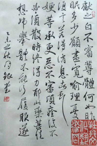 王银堂,1966年出生于山东曹县,号常乐人、梅香书屋主人。自幼喜爱书法,多年临池不辍。特别对二王诸帖及二王系列贴学经典作品进行了系统的临习。受教于书法家协会培训中心研修班,问艺于张旭光、刘文华、刘建风、刘京闻等老师。现师从国展高手李双阳、杨雯等导师。曾多次入展书法家协会和山东省书法家协会主办的展览或获奖。现为中国书法家协会会员,山东省书法家协会会员,菏泽市书法家协会团委员,曹县书法家协会。