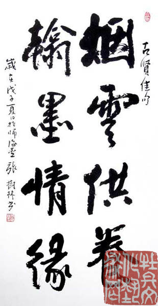 张树林,字若木,斋号师海堂,1954年9月生于山东曹县,1978年毕业于曲阜师范大学艺术系,1992年调入日照经济开发区工作,任文联。现为z'g书法家协会会员,山东省书法家协会理事,书法创作评审委员,日照市书法家协会副,山东画院高级画师,曲阜师范大学美术学院客座教授。树林先生学书师承当代名家张海先生,并多次受蒋维松、魏启后等名家指导;国画受教于国画名家天津南开大学陈玉圃教授与王熹先生。平时重视对优秀传统的继承,勇于探索创新。作品发表、出版散见于国内外诸多专业报刊杂志及书画专辑中。树林先生的书画艺术修养全面而精深,作品独具风格,着墨彩色别有神韵,笔墨之间洋溢着雄豪之气。有的雄豪如大海波涛,有的飘逸如浮云轻掠,有的洒脱如风流才子,千姿百态,令人目不暇接。树林先生书法作品多次入选全国大展、省展以及国际文化交流展,并多次获奖。其作品被文化部艺术人才中心、军事博物馆和人民大会堂所收藏,并被省、市人民、企事业单位以及有关部门作为礼品馈赠给二十几个国家的领导人和国际友人。1995年参加在香港大会堂举行的“张海师生十人作品展”,1998年有8件书法作品在美术馆展出,曾三次出访韩国,赢得广泛好评,在国内外日渐声隆。