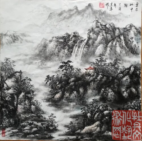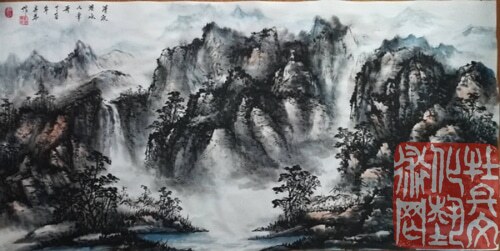 刘春华先生的山水画:表现技法上主张“大”。此“大”一口口为“境界之大”,他不喜好艺术上的“小桥流水”,苦心追求艺术上的“黄钟大吕”。此特点与他作为一名山东人豪爽的性格特点是分不开的。二为“尺幅之大”:大处着墨,动而不息。作品大幅意境开阔,笔墨浑融;小品意韵简远,笔精墨妙,令人如品清茗。