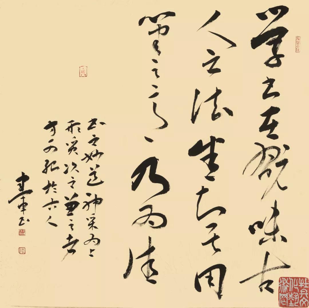 用老庄哲学营造书法意趣是张建军书作的高逸之处。他认为,虽然思想与情结无形无迹,但却能栖匿于笔墨之中。所以书家应用老庄之理“以书媚道”,感悟自由、通达的精神世界。张建军的书法创作把老庄的“心斋坐忘”、“涤除玄鉴”作为自己的审美取向,不拘泥于书法之原性,他以“自我”为本追求“神会”,以期达到“人法地,地法天,天法道,道法自然”的艺术境地。他的《书论》、《临古》、《画禅室随笔》等书作在彰显扎实的笔墨功底的同时,无不闪现着古雅、秀逸的个性风采。 李白在《王右军》诗中写到“右军本,潇洒出风尘”。这是诗人称赞书圣品德清纯、风韵洒致,赞扬他的书作如其人品,清隽超逸、精妙绝伦。欣赏张建军的书法作品,让人感受到的就是其中蕴含的沉婉、疏适、不饰张扬的本真特色。他书写的巨幅横书《禅茶一味》犹能显现这一特点。《前人联句》之“从赤壁以来与客泛舟无此乐,自青莲而后举杯邀月更何人”、《弘一禅语》之“以冰霜之操自励则品日清高,以穹窿之量容人则德日广大,以切磋之谊取友则学问日精,以慎重之行利生则道风日远”等书法内容也恰是他情操、修养及人生态度的真切写照。他不健谈,亦不善饮,三五道友相聚,他静静地坐在那里,但总能让人起一种亲切和敬意。二○一五年,他创办了张建军书法学校,身体力行,孜孜不倦。他说,让更多的少年经受传统文化的熏陶和磨练,是一种担当,也是一份责任。山东省书法家协会副、书法家曹钰先生对他的评价和期许颇高:精诚执着,潜心习古,挖掘性情,放怀书写。至此,遂想起佛教中曾流传的一则“莲花夫人”的故事。从前,有一只鹿生了一个美丽的女子,仙人将她抚养成人。她走过的地方,便长出朵朵莲花。书法是一门艺术,更有一种品格。借用这个寓意美好的故事,愿张建军的艺术人生更加意蕴气洁、步步莲花。 张建军,号小龙轩主,问其缘何?答曰:一九六五年,旧历乙巳小龙年是也。