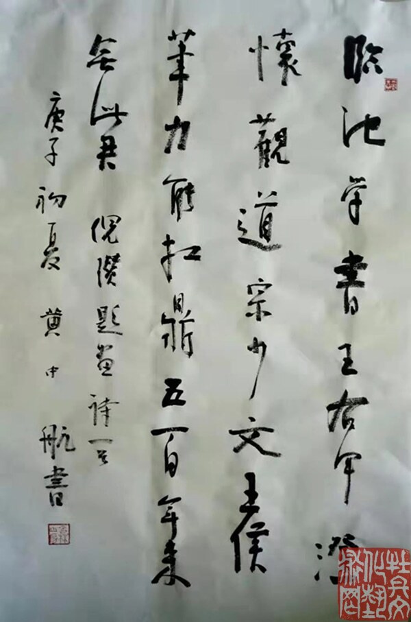 黄中航,笔名渔村、渔樵、子休门生,1964年出生于山东东明。现为中国书法家协会会员、菏泽市书法家协会副,菏泽市专业技术拔尖人才,曹州书画院画师、曹州美术馆画师,日本书艺院监查员,书法之乡一东明县书法家协会。书法作品入选入展首届书法兰亭奖作品展,全国第八届书法篆刻作品展、全国第七届中青展、全国届大字书法艺术展、全国第二届楹联书法大展等十余次国家级重要展览,连续三次在日本书艺院主办的国际文化交流书道展中获金奖。先后在展览馆、美术馆举办“黄中航书法作品展”。