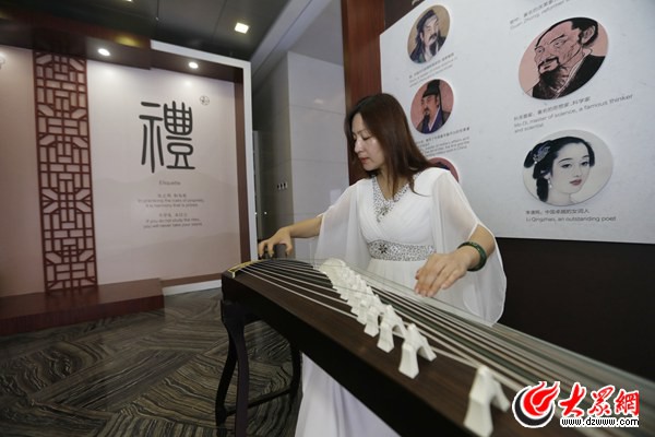 除了非遗视觉盛宴,现场宛转悠扬的古筝曲声始终萦绕在嘉宾们耳旁。《高山流水》等一曲曲古筝演奏都是出自山东菏泽古筝名家祝妍芳之手。山东古筝乐是古筝重要的组成部分,有着悠久的历史,在长期流传过程中,逐渐形成了华丽柔美、刚劲明亮、音韵浓郁的艺术特点,在全国各筝派中具有鲜明的特色。