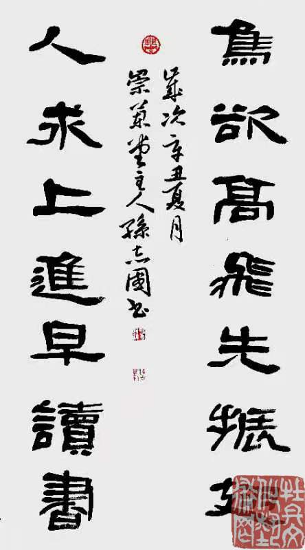 孙志国,1967年出生,号崇兰堂主人、有容斋主人、沙漠行者,供职于河南省能源工业技师学院。为当代书法家吴行(复生)先生开门大弟子。现为中国书法家协会会员、河南省书法家协会会员、中韩书画家联谊会理事、国际青年书画家联合会会员、书画学会会员、煤矿书协会员、黄河书画研究会副、义煤集团书协副等。其书法作品自全国第六届书法展和全国第三届新人新作展以后多次入展书协举办的国展、届展、专项展。在《书法导报》“第16回拳拳五人展”、“中韩书法交流大展”、“世界和平书画展”、“黄河魂艺术大展”、“·日本书画联展”等数十次全国或国际性展览中入选、获奖,作品多次到海外展出。其传略、肖像、作品被《当代青年书法家大辞典》、《国际书画篆刻家年鉴》、《当代书画篆刻家润格博览》、《百年经典—书法全集》、《世界艺术家名人录》、《中华兴国人物大典》等近百部辞书和作品集收录,亦被焦裕禄纪念馆、叶挺纪念馆、北大荒碑林、大庆碑林、唐尧碑林等多处纪念馆、碑林刻石收藏,有众多作品散见于各级专业报刊,作品多次到日、韩及港台等地区展出。