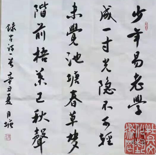 高月塘,字青莲,号墨山,山东莒南县人,党员,大学学历。历任山东省人大常委会办公厅副主任;山东省人大书画院秘书长;当代美术家网推荐书法家;现为中华翰墨书画院副院长;中华翰墨文化研究会副会长;书画研究院常务理事;书法家协会会员;山东省书协法家协会会员;新长城艺术家;北京东方翰林书画院高级书画师。其作品多次被羲之书画报、书法导报等20余家报刊刊登,被武训纪念馆、毛公山红色文化博物馆等收藏,曾荣获2009“书画艺术百杰”荣誉称号。多次应邀参加书协及社会各界的书画展览、并多次获奖。2012年12月,应邀为纪念武训先生创作楹联书法“仰古俯今,义学有几处?行乞兴教,先生人。”2015年获第五届“炎黄杯”国际诗书画印艺术大赛金奖;2016年获“梦•齐鲁情”山东省省直机关书法美术摄影作品展览二等奖。