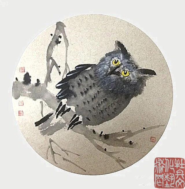 《雁去秋来冬眠香》大块的空白使人感到秋高气爽,云飘风动。《潇湘四面风西急》中使用泼墨的技巧,使画面上水流雾动,充满了风雨的情趣。特别是《天乐图》渺远的飞鸟把山树的一大片空白衬托得天宙之广袤,使观者意识到个体在大自然里的弱小。一幅廖廖数笔的清供图,几枚红椒食里,置于盆里,壶杯和散发幽香的几株腊梅遥相呼应。几乎整个画面题满了毛笔字,组成了一个素色的屏幕,静物又成了舞台上必不可少的几位主角演员,演出潇洒飘逸的戏剧。这种高度的凝练和简洁,使我想起了传统的京剧。一个空空的虚拟的手势:开门、挥鞭、撑篙就把情节生动地传递出来。东方文化就是这样通过历史的积淀,使它在世界上立足并产生魅力。永光先生告诉观者,常去上海名家洪丕模处交流,他除画画,又练草书,篆刻,收藏古玩,阅读佛道,易经,古文笔记,这使观者意识到永光先生在修练自己,把内涵的触角伸向各个领域。并且以的、东方的民族艺术正向世界走去。永光先生将观者送至门口,还是笑容可掬,像东方的弥勒,这位在相山脚下斋室里做学问的画家,在画作中彰显着东方的韵味。