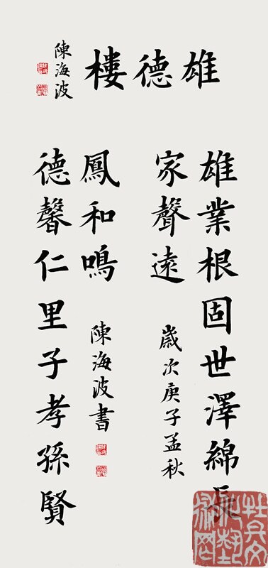 陈海波,学者、艺术家。主攻书画、装饰和艺术管理,韩国东方文化大学院大学文化艺术硕士、香港城市大学艺术管理博士。民间文艺家协会手工委副主任,北京大学书画管理课题组秘书长,教育电视台水墨丹青书画院副院长,南昌理工学院客座教授、正高级装饰工程师,民间文艺家协会、收藏家协会、楹联学会、中华诗词学会会员。