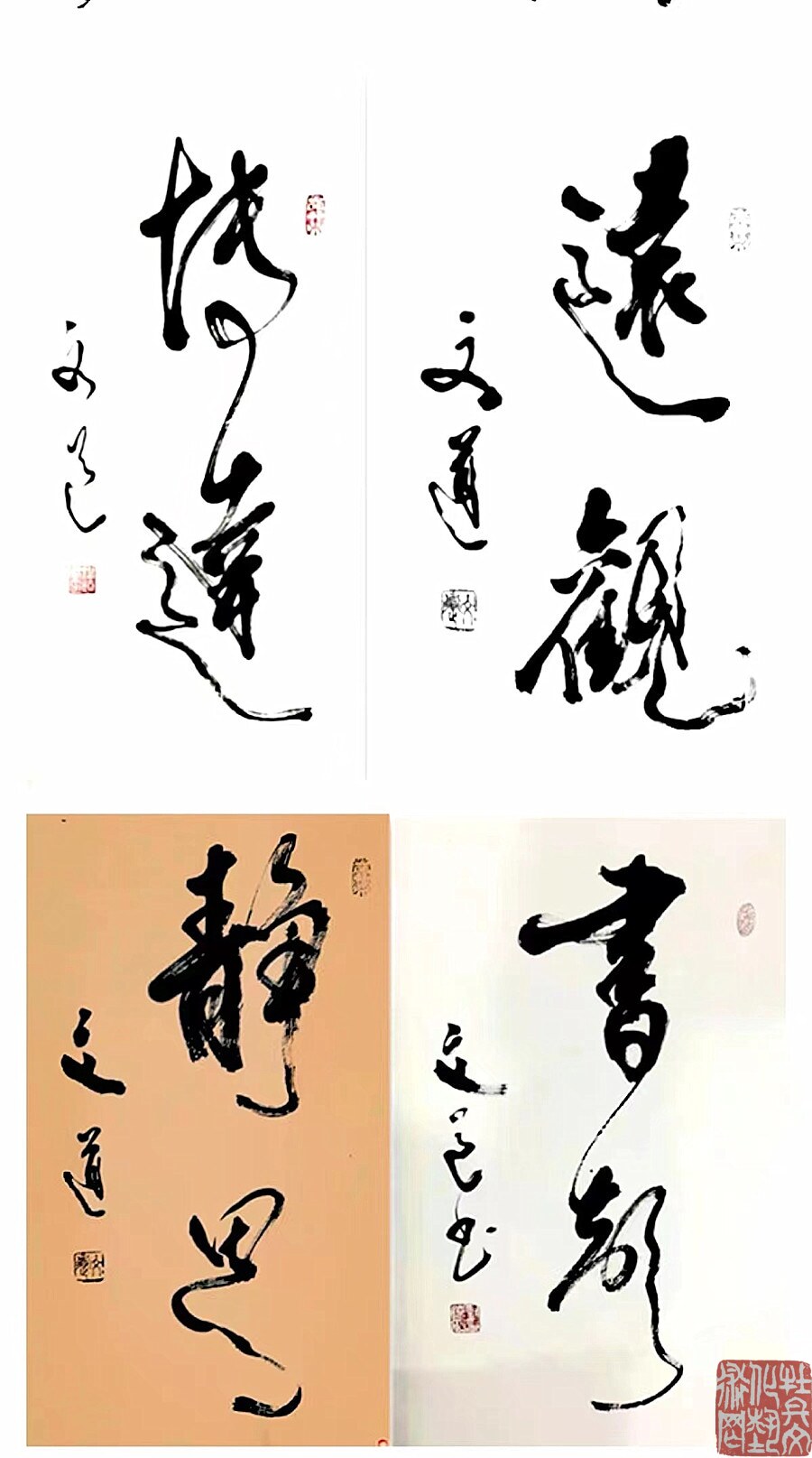 文道,原名刘晓风,陕西富平人,现居西安,国家一级美术师、高级研究员、艺术导师、文化学者。现任:书画家协会副,中囯书法家协会会员,陕西省书法家协会会员,陕西省榜书家协会常务理事,西安市书法家协会会员,陕西省楹联协会会员,陕西书画艺术研究院副院长,陕西慈善书画研究会常务理事,陕西省社区文化普及促进会常务理事,当代名家书画院常务副院长,中央电视台华人频道特聘签约书法家,西北大学文化产业研究院书画院理事,陕西英才委员会、联合国友好一带一路委员会特聘专职书画家,陕西唐韵文化艺术公司首席艺术顾问等。 文道拜一代行草大家贾旭为师,对历代名帖潜心钻研,心摹手追,作品不拘一格,用笔果断自信、遒劲有力、提按顿挫自然灵动、刚柔并济、结构严谨多变,笔墨交融,形成自己雄强厚重、清新流美的艺术风格。其作品在国家级、省市级大赛中屡屡获奖,并入编《全国书法美术优秀作品集》《当代书画艺术领军人物精品集锦》《当代书画艺术家精品鉴赏》《东西南北富平人》《当代艺术鉴藏》《庆祝新暨人民政协成立60周年书画精品集》《海峡两岸和在书画展精品集》《魅力》《纪念周恩来逝世三十周年全国书画大赛优秀作品集》《当代艺术家》《写意楼观首届老子文化艺术节》《二十一世纪文化专刊》《世纪风釆人物》《当代艺术鉴赏》《各届导报创刊30周年书画精品集》《西部书画名人名家精品集》《届西安碑林书法艺术节展览作品集》《艺术品收藏具实力艺术家》等百余丛书。 “名家书画报” “当代名家书画报” “西安晚报” “陕西电视台” 等百余家媒体、网络相继报道, 并荣获“当代实力派书画家” “当代具魅力书画家” “当代书画艺术领军人物” “当代书法百杰”等光荣称号。曾在2008年我们心心相印”抗震大型义卖活动中做出突出贡献,并多次评为爱心大使”称号。作品流传于日本、香港、台湾、韩国、澳大利亚、新加坡、美国、英国等国各级部门、国家元首、文化机构及收藏家收藏,以珍贵礼品馈赠。