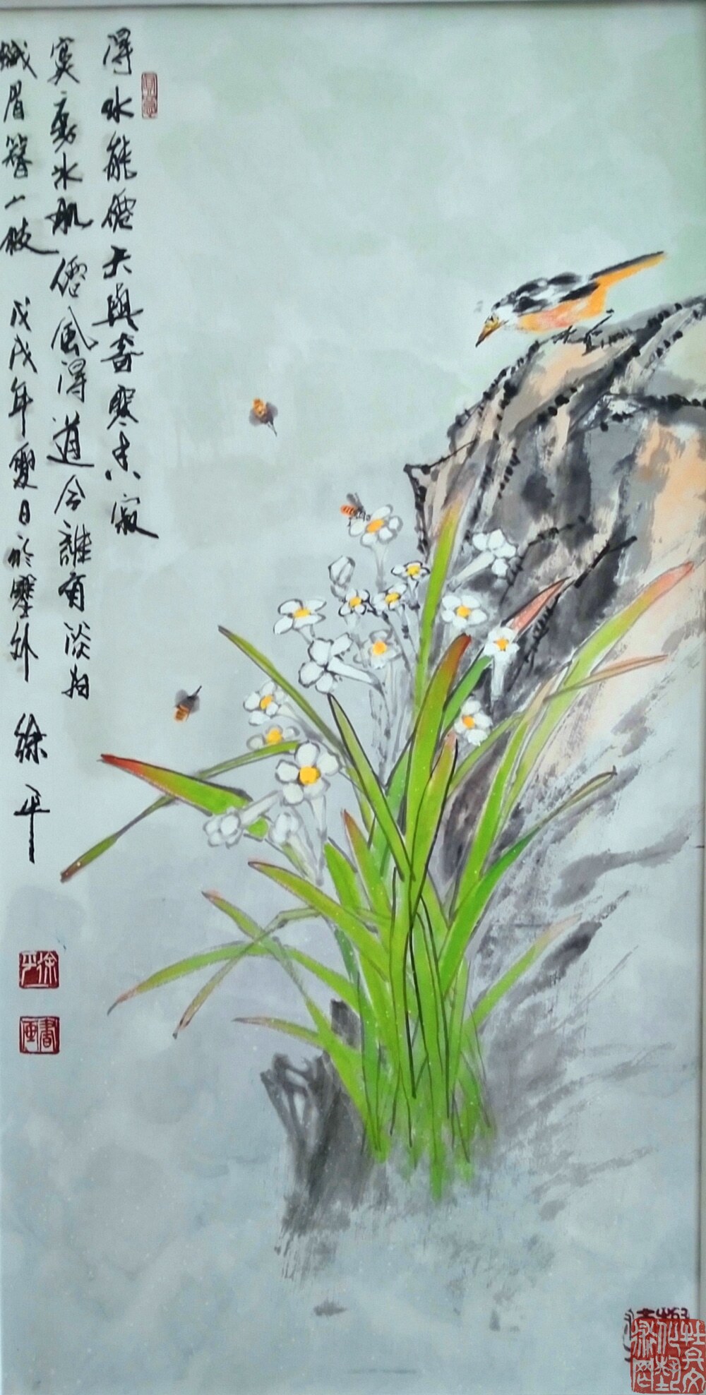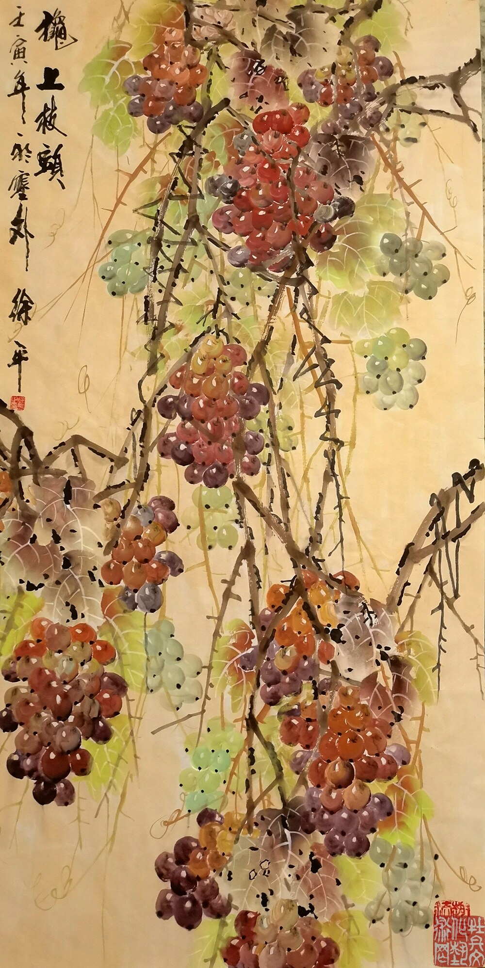 徐平,字岚峰,1956 年出生,书法家协会会员,中央国家机关美术家协会理事,人民日报《新闻战线》艺术顾问,北京师白艺术研究会会员。 多年来成功举办个人书画作品展,作品在“建国六十周年书画大赛”中荣获金奖,作品被《当代书画名人大辞典》《书画艺术传世精典》《共和国书画甲子大典》《艺术品收藏》《鉴宝》《英杰会》《农村信用合作报》《影视节目信息网》等杂志收录及刊登。近期作品荣登《人民日报(新闻战线)书画专刊》《2015当代书画名家优秀作品展》《中央国家机关纪念人民抗日战争暨世界反法西斯战争胜利70周年书画集》《荣获2015国际文化艺术博览会佳艺术创作奖》。 2013年5月在雪乡牡丹江成功举办《墨染春秋》个人书画展;2015年12月在山东青州成功举办《华中缘 笔墨情》花鸟画精品展;2016年在山东临朐成功举办《清风徐来绘丹青》当代书画家徐平作品全国巡回展。徐平老师的四尺整张彩墨荷花《圣洁仙子》于2016年6月在北京瀚海国际拍卖公司春季拍卖中以9.2万元成交。参加曾出版《墨染春秋》《墨舞人生》《墨海扬帆》《彩墨艺术》四部书画集和多篇书法漫谈,作品同时在书画频道中播出。在国画艺术方面由其擅长画《墨葡萄》,《墨葡萄》多次被各国政要和收藏家收藏,在艺坛更是享有“圣手葡萄” 的美意。 2016年4月代表北京市参加了“2016年京台文化创意产业展”,参会期间受到台湾各界人士的拜访及接见,其中书法作品被亲民党党宋楚瑜及党洪秀柱收藏,为两岸文化交流作出贡献。 多年来,热心公益活动,多次参加为《青少年健康人格工程》捐赠作品,为屈正爱心基金会《大爱正心》捐赠活动等。