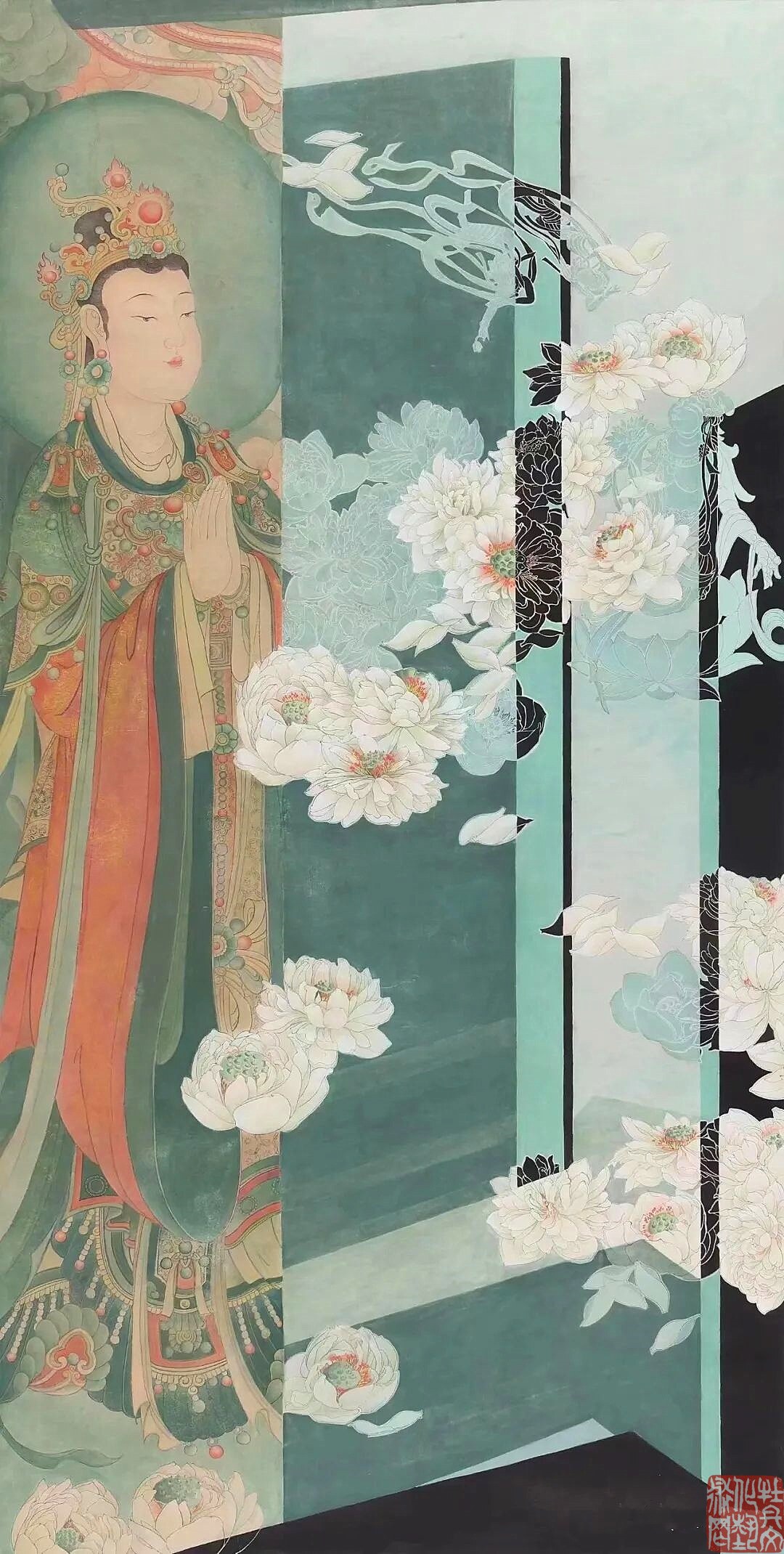 2018年,作品《愿做菩萨那朵莲》入选美协主办的“江海门户通天下”全国画作品展;
