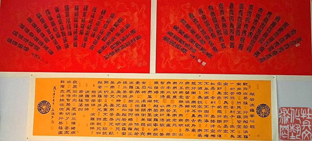 为了宣传书法艺术的博大精深,徐奎忠从O八年开始在全国二十个地市举办过石海书法展,受到当地喜欢者的认可,并为全国四十八个寺庙写过不同的经文令对联字。书山有路勤为经,学海无涯苦作舟,相信徐奎忠会在今后的书法艺术创作中更进一步!