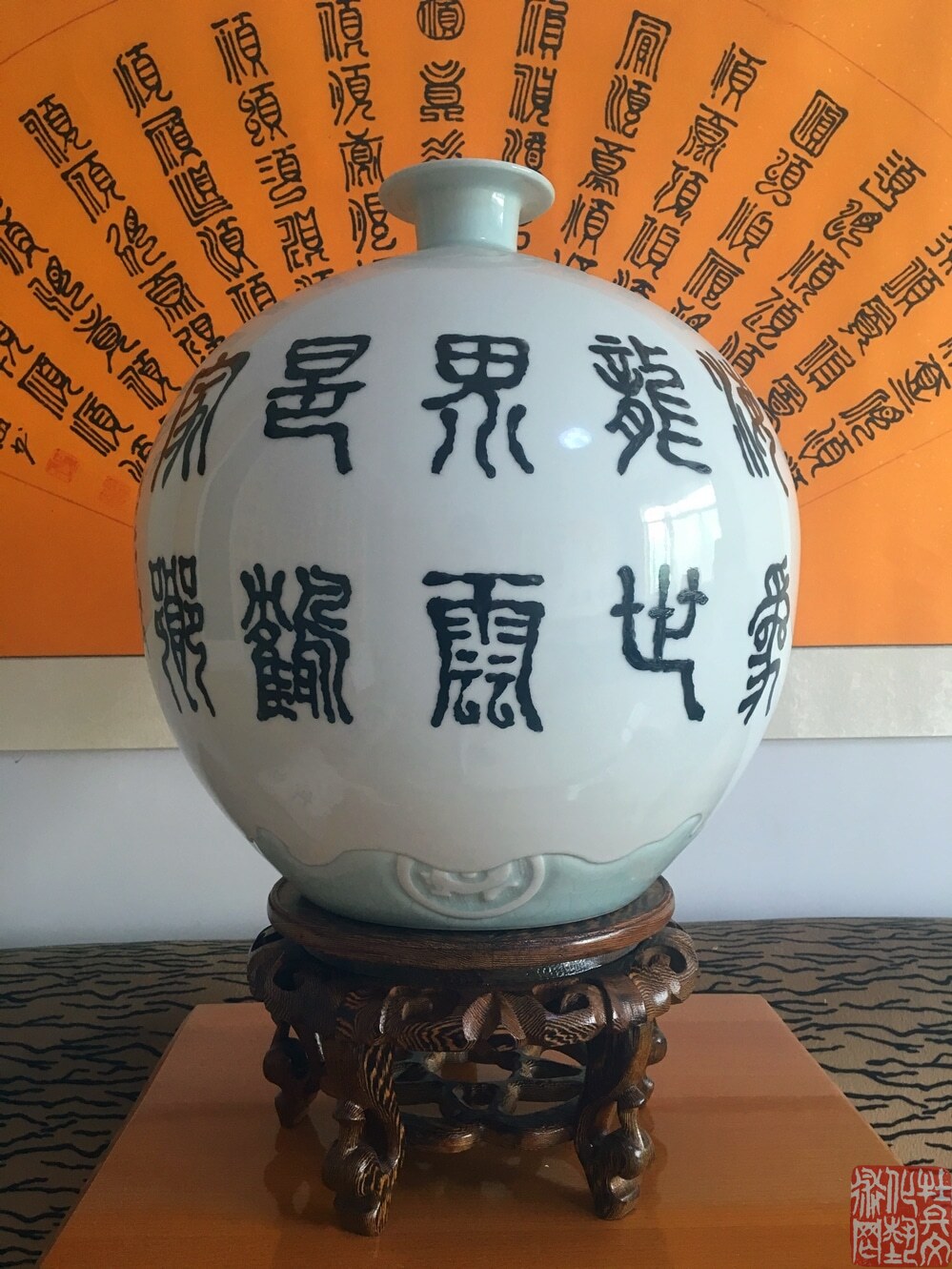 徐奎忠,字石海,号青崂居士,一九五二年生于青岛,现任中国书协会员,中国书画家协会理事,中国画家协会理事,国学文化协会书画院副院长,现代文艺书画院艺委会副主任,淄博市工艺美术大师,淄博墨缘轩艺术馆馆长。一九九五年参加全国书法高研班学习,九八年拜中书协副刘炳森为师,并收为关门弟子。作品多次参加全国书画展并多次获奖,部分获奖作品被国内展馆和外国友人所收藏。在书法创作中主张,学古人学今人,我出我法师造化,师传统发我心愿,以文学之道入书,以做人之道写字。逐步写出自己的风格。由于从师于书法家刘炳森的高严指导,几十年来笔耕不辍,才形成深厚的书法功底,虚心求教,博采众长,笔墨法度广溶名家于一炉,以隶,篆,甲骨文见长,其笔法生动挥洒自如,逐渐形成自己既苍劲又飘逸,藏筋包骨,内含丰富的金石味! 二oo八年在宜兴举办书画展后又与制壶大师王齐云合作创作了许多紫砂作品。二O一四年又开始与工艺美术大师孙丽军合作创办了淄博市墨缘轩艺术馆,发挥书法的特长在陶瓷上又创造了很多作品。陶瓷作品每年都参加省,市举办的工艺美术大奖赛并多次获奖。由于陶瓷作品的多次获奖,并受到上级领导专家的认可好评,二零二二年被授予淄博市工艺美术大师称号。
