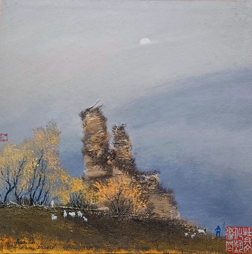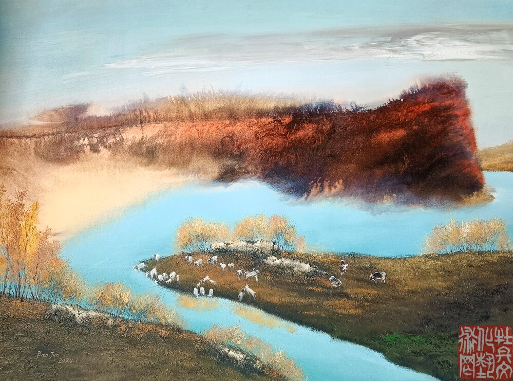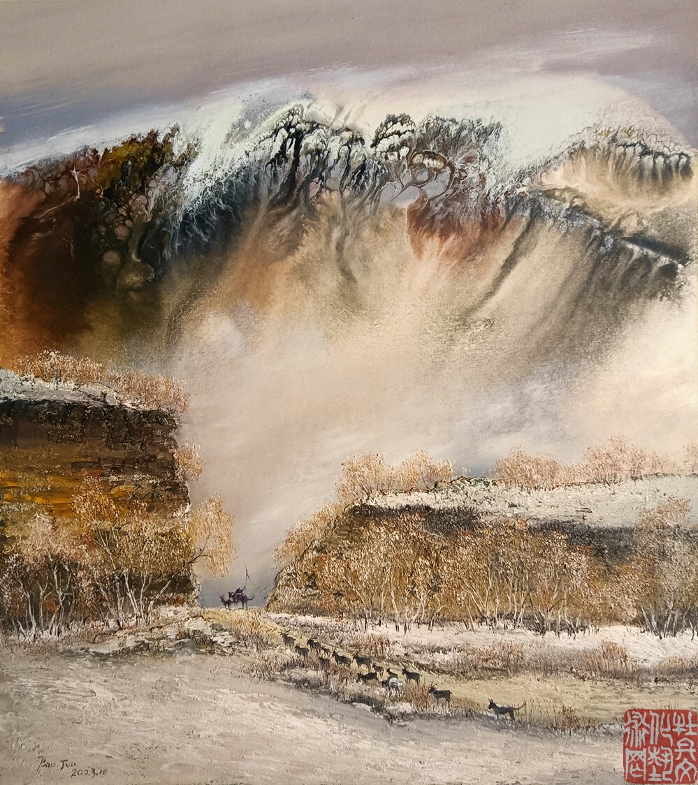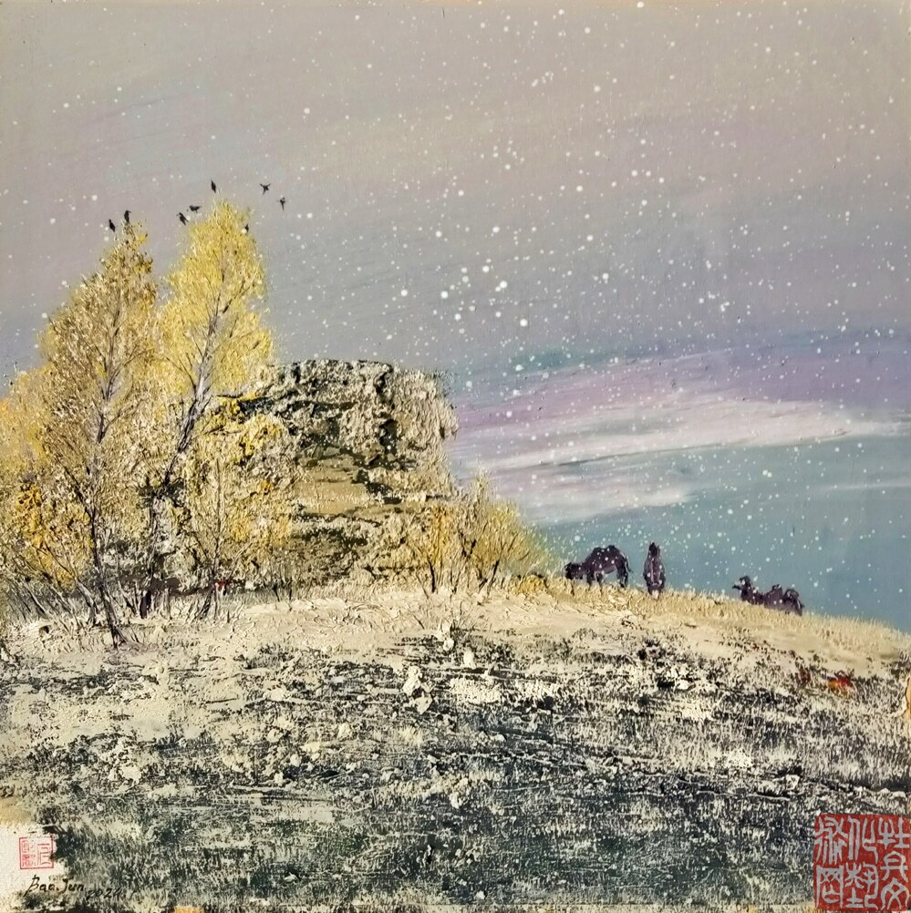 包军,1962年出生于内蒙古呼和浩特市。中国香港美协会员。国家一级美术师。专注油画、重彩浮雕壁画、丙烯画的探索和绘画创作。坚信“苦人心,天不负,勤能补拙”。热爱艺术为本。 A获全国书画大赛优秀奖2次。B2020年作品多次入选《全国油画线上作品展》,《回响七》作品展。C2021年作品收录《当代书画集》。D2021年作品《后涸塘》被山东画院收藏。E2021年初获全国《百花通春书画大赛》铜奖。F2021/7经北京荣宝斋《雅集》绘画专刊部,审核出版个人作品十幅。2021.8获当代美术家网举办的《2021第三届“金鼎艺术奖"全国书画大赛银奖》。