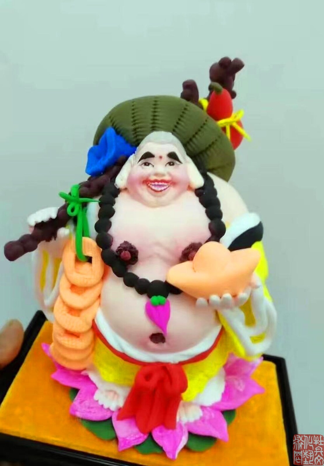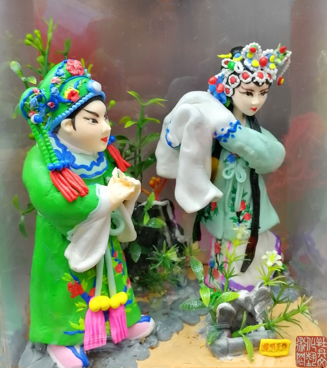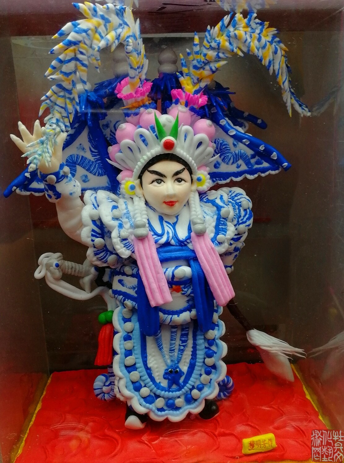 穆明芳,山东省菏泽市人,生于一九七零年,十二岁起开始跟随祖辈学习面塑手艺。山东省民间文艺家协会会员、菏泽民间文艺家协会会员、菏泽面塑艺术家协会副、广州荔枝湾文化交流协会理事、广州市民间文艺家协会会员。专业从事面塑艺术创作、面塑培训、面塑艺术表演工作,曾先后应邀到全国各地展演,现已被批为非物质文化遗产“曹州面人”代表性传承人。路漫漫其修远兮,十五年前南下广州传播曹州面塑手艺,人送外号“广州面人穆”,这是对其面塑手艺的肯定。