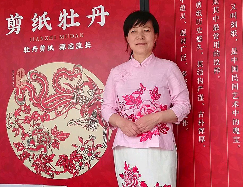 常凤灵剪纸,在继承传统技法的基础上,以菏泽牡丹为主要创作题材,先用白色纸剪成完整图案,之上着色晕染,推陈出新形成了自己独特的墨韵剪纸风格。同时大胆创新,结合本地优秀传统文化和现代时尚生活元素,创意开发剪纸衍生品,套色剪纸,产品备受欢迎。2022年5月,全国人大副委员长、全国妇联参观了常凤灵的作品,对产品的创新给予了高度的评价。常凤灵以文化元素、旅游产品开发带动剪纸艺术的发展,把小众文化推向大众生活,雅俗共赏,传播社会正能量,在鲁西南地区有较高的声誉。每年免费培训1000余人,助力乡村振兴,400余名贫困农民实现了文化就业致富,多次受到的表彰和群众的赞誉。