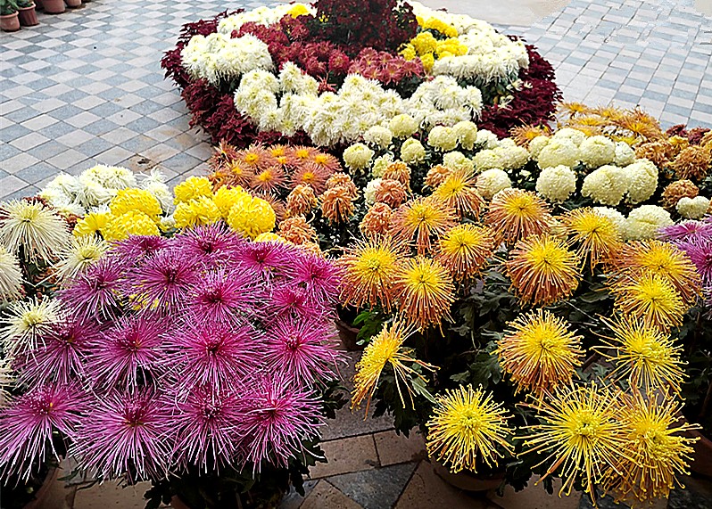 今日,笔者走进菏泽中国牡丹园观看展览,亲睹了数万盆菊花素雅高洁的容颜。一走进公园,仿佛置身了菊花五彩缤纷、姹紫嫣红的海洋,亲身感受到菊花的色、香、姿、韵、味的“娇美”。各种颜色、各种形态的菊花争奇斗艳,红的像火,热情奔放,粉的像霞,优雅淡然,绿的青碧,浮翠流丹,白的像雪,纯正圣洁,黄的像金,阳光灿烂,黑的如墨,庄重穆然……尤如玉宫中的瑶池画卷,真是五彩斑斓,美不胜收,让人忍俊不禁,驻足欣赏。