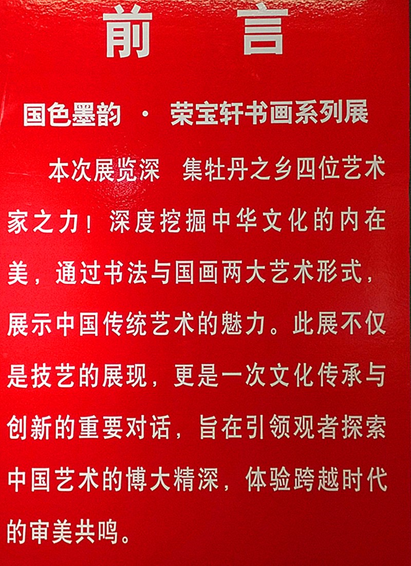 2024年11月24日 ,国色墨韵 · 荣宝轩书画系列展 ~ 李贵钦、葛向阳、杨文彬、庄冬青书画展,在菏泽中华东路荣宝轩美术馆(花都大酒店院内)开幕。此次展览由菏泽荣宝轩美术馆主办,展览时间:2024年11月24日—2024年12月28日。