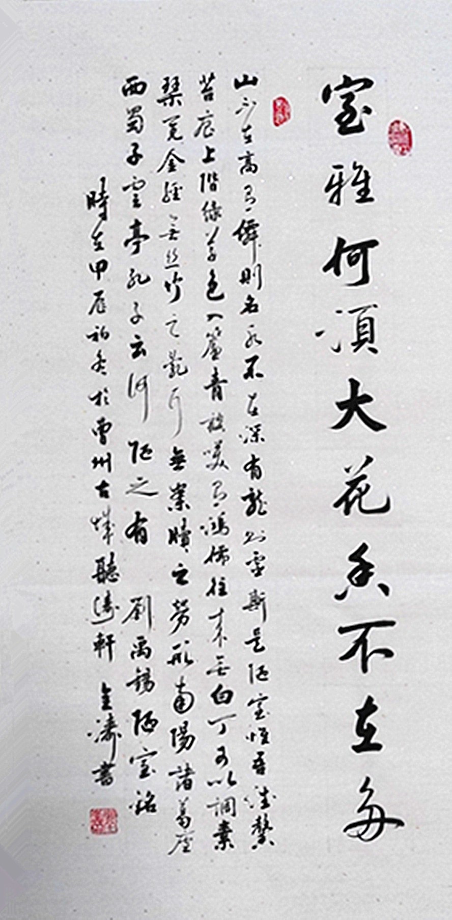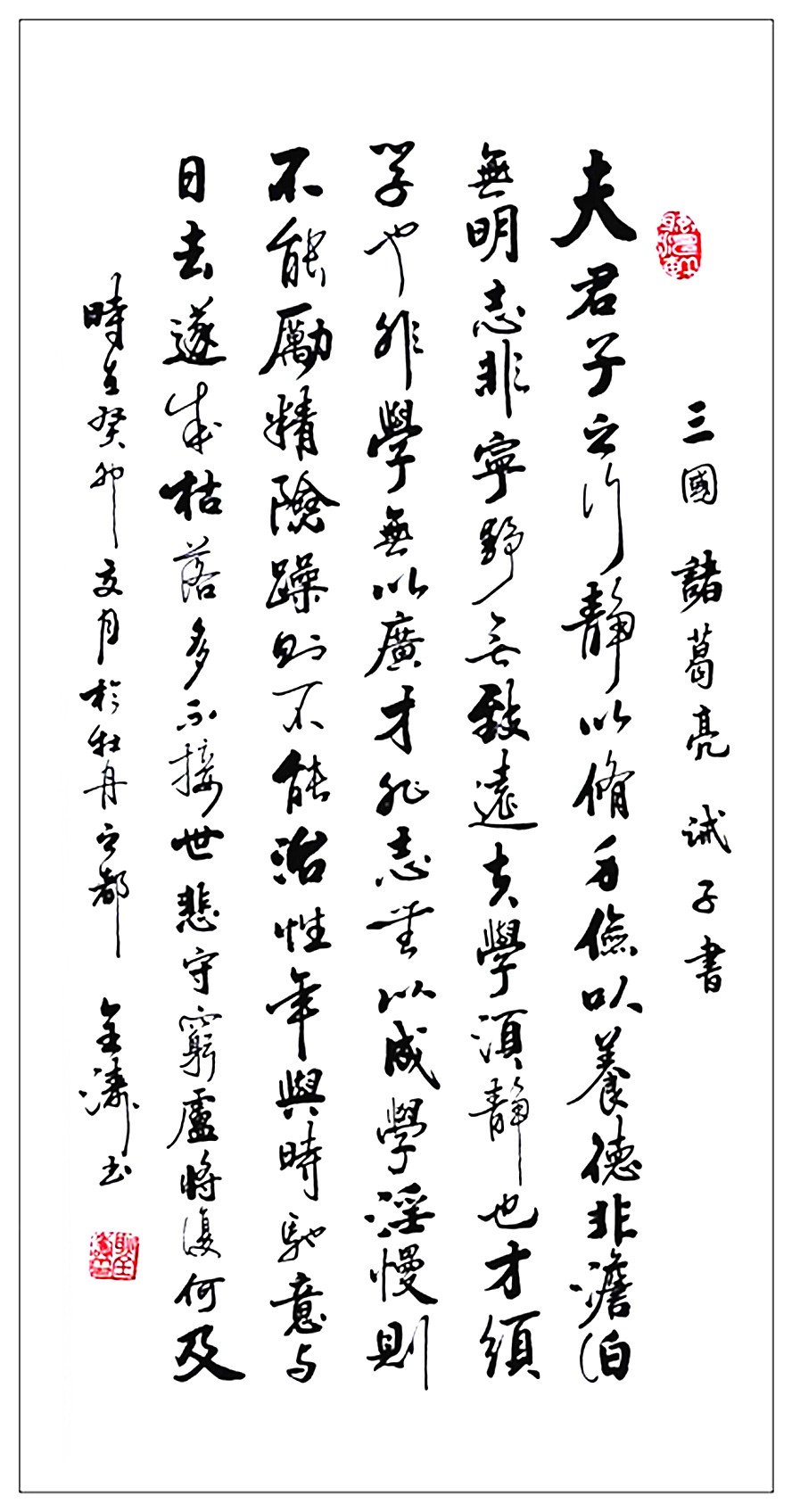 耿全涛,字听涛,号曹州墨人,1981年出生于牡丹之乡、书画之乡山东菏泽,自幼受父亲影响热爱书法,12岁时跟随菏泽市老年书画协会姜云雪老师学习书法。将书法艺术作为精神生活乐趣,临池不辍。临习欧、颜、柳、赵、二王等历代大家名帖,主攻行书。其书法结体端庄,师古而不泥,字体突出了继承与创新、柔中有刚、形态显神。结字飘逸庄重,展现出高山的雄伟,驻之浑然,转之自然,飘之一泻千里,似有“飞流直下三千尺,疑是银河落九天”的霸气和壮阔。多次参加全国书画大赛并获得奖项,在当地文艺界有一定影响力。18年结识中书协孟兆祥老师,经学习交流,字体更加洒脱灵动。23年在菏泽吴东魁艺术馆开馆仪式上认识多位书画名家,书法作品足有神韵!被当地书画院称为“有潜力的青年书法家”,多次参加大型书画展览,多幅作品被国内外友人收藏,受到了收藏者的广泛好评。
