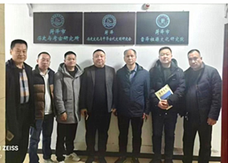 2025 年 3 月 5 日,湖南大学设计研究院王慧军、肖军、尧勇刚、唐鑫等一行四人抵达菏泽,就祖源文化发展情况展开考察调研。此次调研旨在深入了解菏泽祖源文化,探索文化与设计融合的创新路径。菏泽历史文化底蕴深厚,是中华文明重要发祥地之一,拥有丰富的祖源文化资源。市雷祖源文化研究院院长陈勇行热情接待了王慧军一行,并介绍拜访了菏泽历史文化研究学者潘建荣老师。潘建荣长期致力于菏泽历史文化研究,著有《二十五史与菏泽历史文化》《帝尧陵研究》等著作,在业内颇具影响力。座谈会上,潘建荣老师详细介绍了菏泽祖源文化的发展历程、现状及面临的挑战。双方就如何利用现代设计理念传承和发展祖源文化展开深入交流,共同探讨通过创新设计推动文化与旅游融合的可行方案。