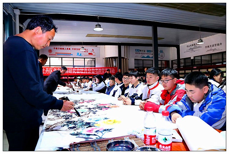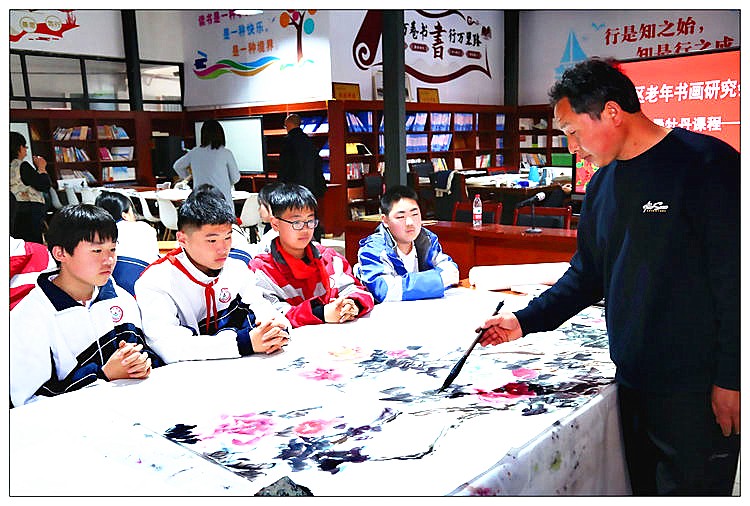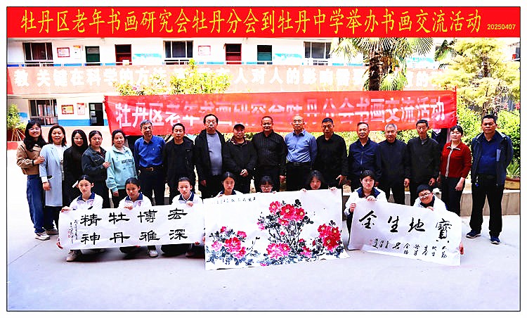在互动环节,艺术家与师生展开了热烈的交流。“此次活动不仅是一次艺术展示,更是一次文化浸润。” 牡丹中学校长在致辞中表示,老年艺术家们带来的不仅是精湛的技艺,更是对传统文化的坚守与热爱。学校将以此次活动为契机,进一步推进 “书画进校园” 常态化,通过开设校本课程、成立兴趣社团等方式,让更多学生亲近笔墨、感受经典,让传统文化的种子在校园里生根发芽。