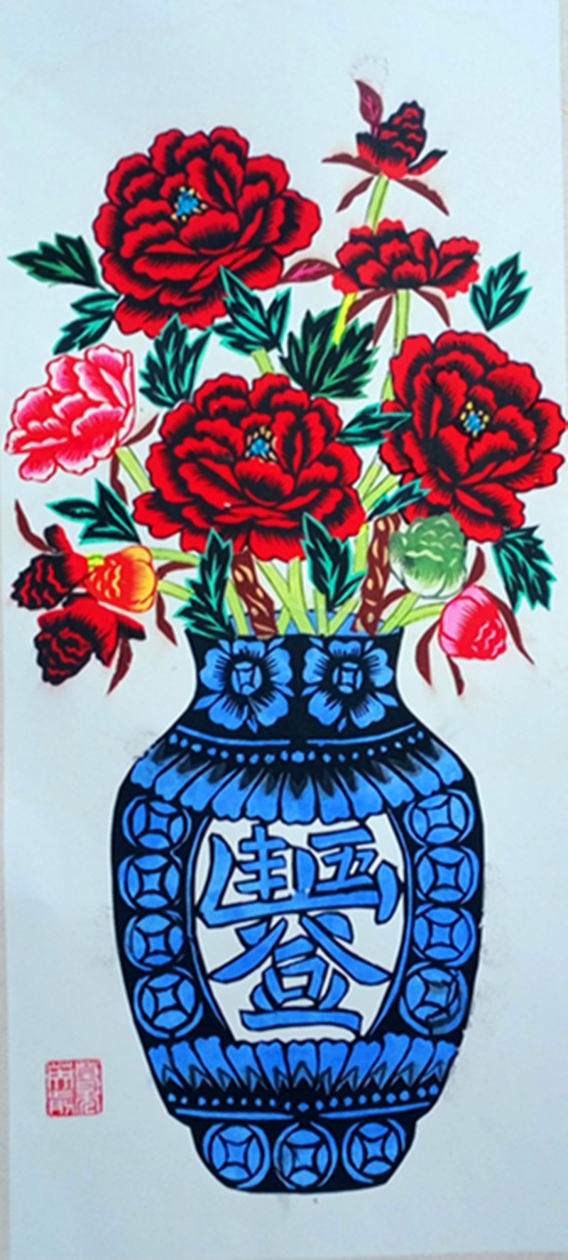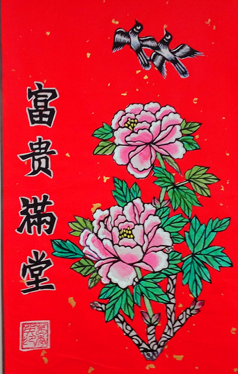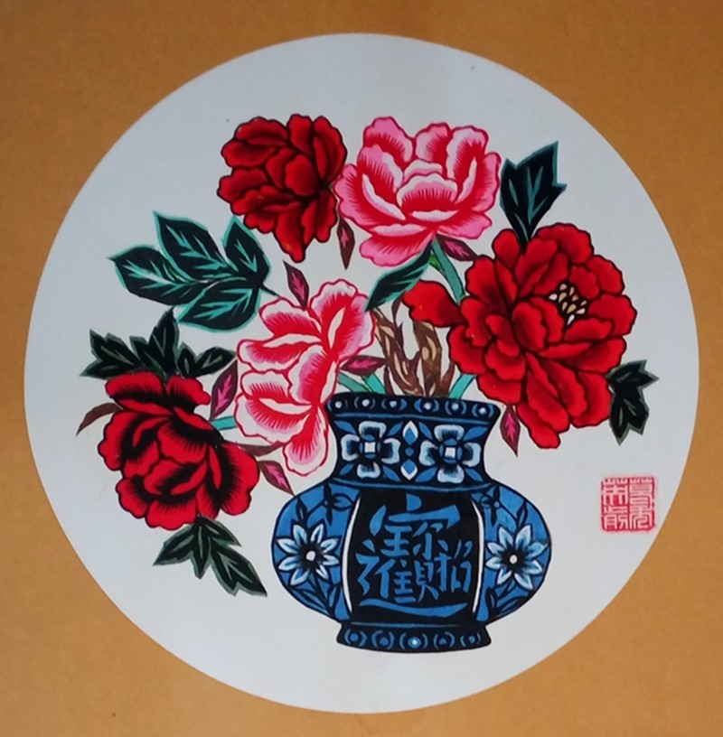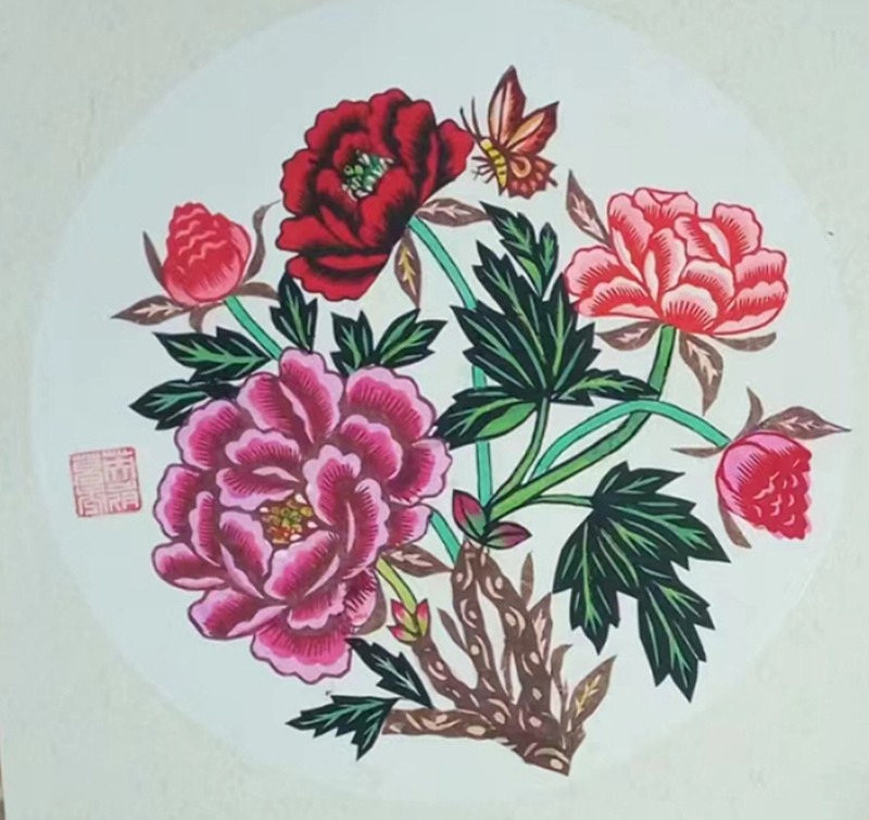 据葛秀英老师介绍,为迎接2025世界牡丹大会第34届菏泽牡丹节,多半年前就开始着手构思剪作牡丹作品,既有单色(纯红色)剪纸长卷,又有多彩套色剪纸,充分展示了剪纸牡丹非遗传承人的精湛技艺和博爱情怀。