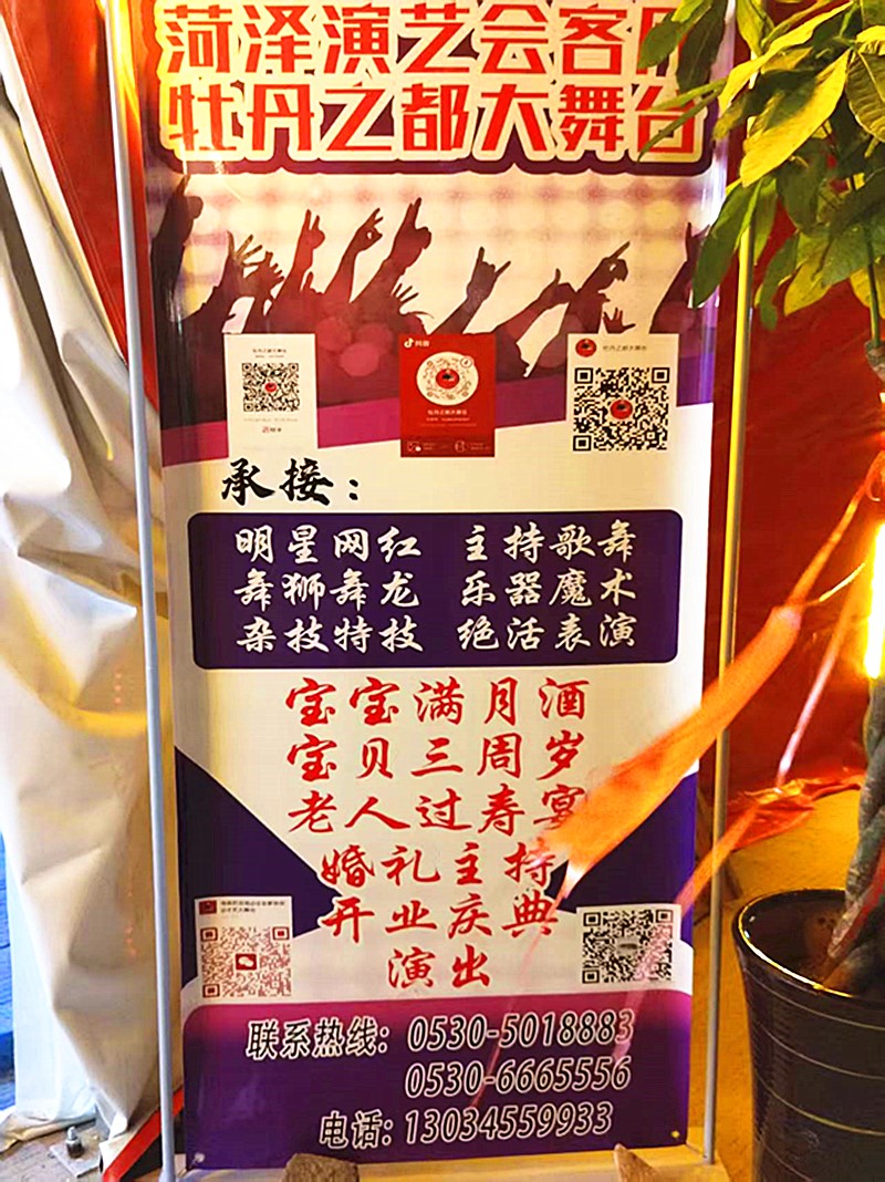 在中国牡丹之都,菏泽长江西路菏泽警察培训基地对过,新筹办了一家集文化、娱乐、餐饮、住宿、商务、社会公益等于一体的大型消费场所。凡来此就餐者,免费提供引亢放歌、洗浴、憩息、商务会谈等场所,会所宽敞明亮、设施齐全,文化气息浓厚、私密性强,是成功人士洽谈事务、叙友结谊的不错选择。同时如果你有艺术天赋,这里也是一个你施展才华、展露自我、走向诗和远方的良好平台。这里有联爱慈善救助,全国婚恋免费,一起见证单身男女的幸福之旅。这里还有知名书画家作品馈送,修身养性益精神```优越的位置,舒适的环境,贴心的服务,解松的情愫,期待你的惠顾莅临。
