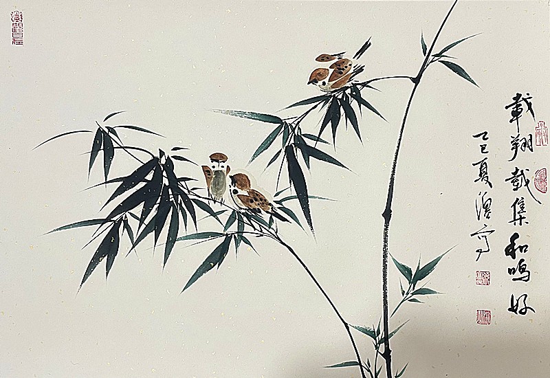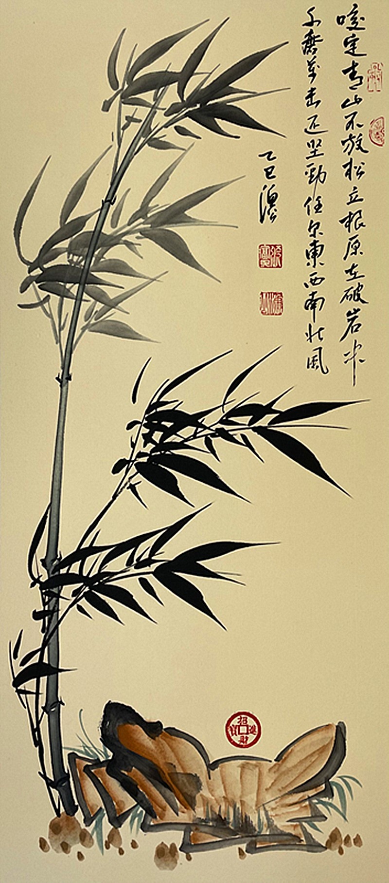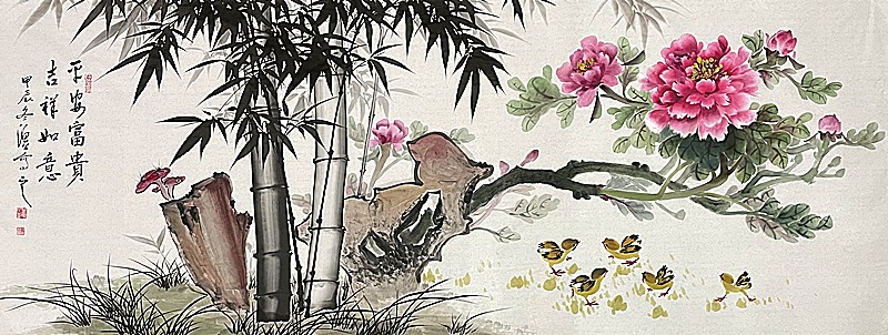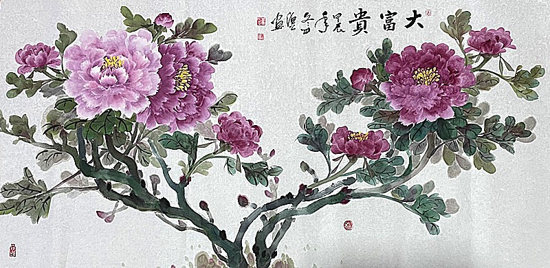 张富民先生,号:渔公。1967年生于山东菏泽。系中国溥杰书画院副会长。山东书画培训学院国画教授。曹州书画院特聘画师。渔公年幼痴丹青,喜翰墨。早年悉得崔子范,杨象宪,张世明等名师指教,已初具规范。后经潜心修炼古圣先贤之妙法,得博采众长之独具,章草隶篆及文学修养更是植入其胸怀,以文人画墨竹入画。注重笔法和写意与境界的传达,常与梅,兰,菊并称“四君子”。墨色浓淡,竹叶向背,强调笔墨意趣和精神象征,兼具动态写实与文人气质融合,具备文人书画家的文化素养和内在修为。其作品追求技术的精湛,更强调画面的意境和气韵。幅幅墨竹柔美中见风骨,清新里浸高贵,将竹子的气节展现得淋漓尽致。鸟儿立在枝头,更是为画面平添了生机乐趣。竹竿无论粗细,皆具挺拨,似君子坚韧不屈,顶天立地,气节非凡不与世俗同流。幅幅具臻,皆为佳作。具有极高的收藏价值。因墨竹的设色,侧重了色彩与写实,由墨竹画强调笔墨意境与精神象征流转到花鸟画的世界里。文人画与花鸟画并蒂莲开。牡丹属于花鸟画。世人甚受牡丹,张富民先生也因此侧重于牡丹的描绘。张富民先生写画的牡丹,花朵硕大,花瓣层层叠叠,尽显牡丹的富丽与丰茂。因此在国画中张富民先生的牡丹图备受青睐。张富民先生的牡丹画法多样,既有细腻工整的工笔画,也有挥洒自如的写意画。画家通过牡丹表达情感与精神,其作品不仅展现了牡丹的美丽,也传递了画家对美好生活的向往和家国情怀的热爱。牡丹在中国传统中象征着富贵吉祥,代表着物质富足和国家繁荣昌盛。跨领域创作是全能画家基本要素,所有的画技皆在笔墨功夫里。岁月的笔法练达,画家境界的深远,人生的洞察,皆在通感中一应而具,不二法门。文人画,花鸟画,人物画,山水画,幅幅佳作行云流水,蛇笔游龙皆呈现在张富民先生的画作中。张富民先生不拘单一艺术形式的限制,诗,书,画,印,皆淋漓尽致体现在艺术中。重视意境与思想的内涵,体现了文化修养的重要性,以全能画家为楷模,一生皆在努力成为真正的人民艺术家。