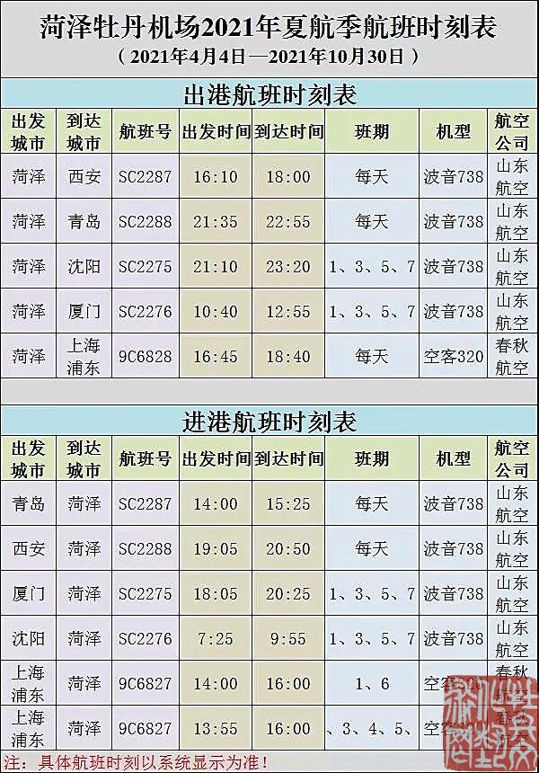 4月2日,菏泽牡丹机场正式通航,标志着菏泽迈入航空时代,首航由山东航空执飞菏泽=西安春秋航空执飞上海=菏泽。