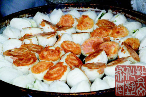 鲁西南名吃之一,其状扁圆,上下呈金黄色,外酥里鲜,口感甚佳,因其馅不同,分为羊肉、猪肉、素菜水煎包多种。其馅无论是荤素,均加葱、姜、五香粉、香油、细盐调制;皮为小麦粉面发酵。将包子放入平底锅内少许,再加面水,后浇香油,翻一遍出锅即成,是菏泽市民非常喜爱的食品。