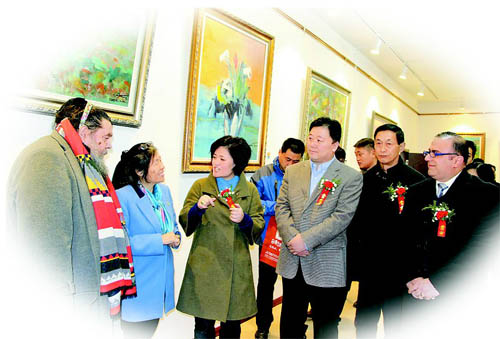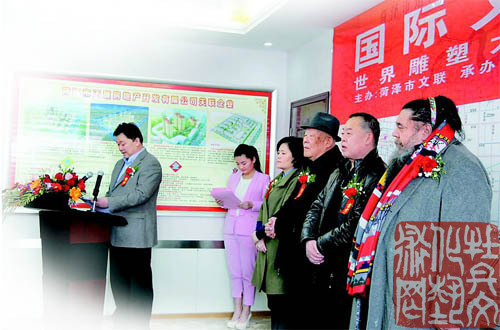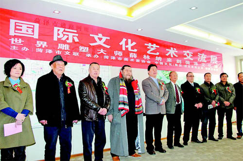 文化集团股份有限公司董事长王福波(左一)在“薛林纳雕塑展”开幕式上致辞由市文联主办,文化集团股份有限公司、菏泽文化城协办的国际文化艺术交流活动——世界雕塑家薛林纳雕塑艺术展,1月31日上午在菏泽文化城天荷御园项目部隆重开幕。原市委常委、军分区原政委宋新立,市文联尹慧萍,菏泽学院教授、书法家谢孔宾,文化集团股份有限公司董事长王福波,台湾教授赵承廉,正厦房地产开发有限公司总经理郑艳,意大利建筑学博士克里斯,省、市近20家新闻媒体和近千名文化爱好者出席了开幕式。这既是东西文化交流的一次盛会,也是我市文化艺术史上的一个重要里程碑。据悉,此次展览共展出薛林纳雕塑作品41件、绘画作品40件,展出时间将持续到2月28日。