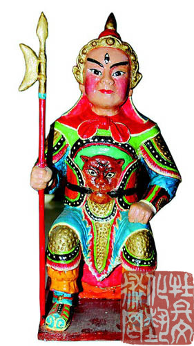 在张中芹的家里,还有已经做成的泥塑作品——“二郎神”,衣褶线条流畅,飘逸,十分传神,实在是令人难以相信这都是“泥糊”的。