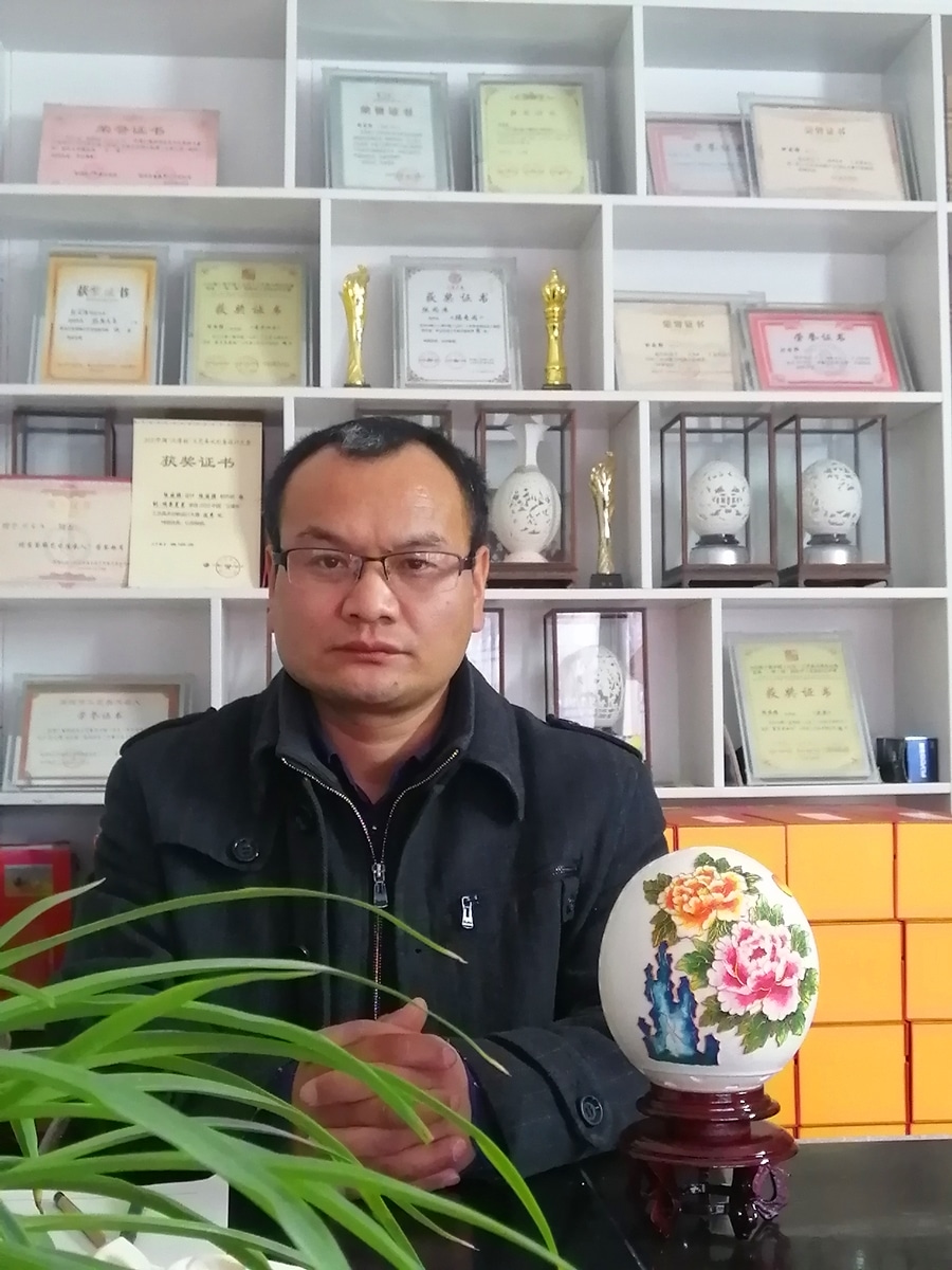 陆国强,1981年9月出生,自幼受父亲影响学习蛋雕, 2001年7月开始职业蛋艺术雕刻。现为: 鸵鸟养殖开发协会理事, 民间文艺家协会非遗产业基地专委会员, 山东省工艺美术协会会员, 黑龙江省工艺美术协会蛋雕专委会员, 菏泽市工艺美术协会会员, 菏泽市民间文艺家协会会员 菏泽市青年美术家协会监事, 菏泽市工艺美术大师 菏泽市鲁西新区非物质文化遗产保护协会副会长。
