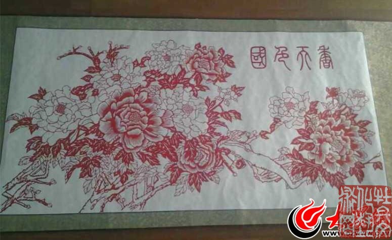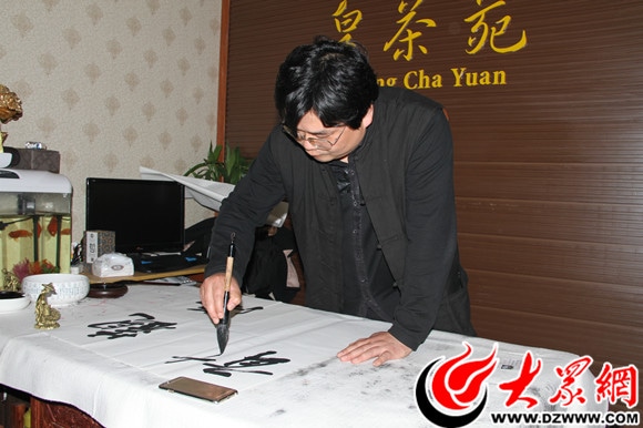 书法家协会会员来永崎,用书法表述牡丹的雍容华贵