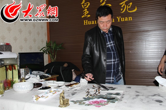 从深圳赶来赏花的彭述超现场创作一副牡丹