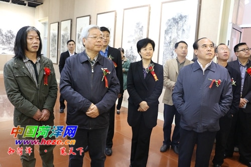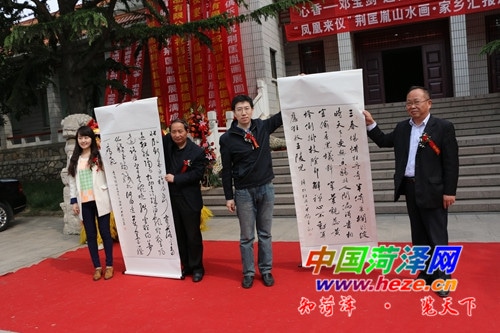 4月21日,“邓宝剑、赵梓汝师生书法联展”暨“荆匡胤山水画家乡汇报展”在曹州书画院举办,书画结合,相映成辉,为书画之乡——菏泽增光添彩。美协原副秘书长李荣海、市人大常委会副主任丁志刚、市政协副杨晓玲出席书画展开幕式并致欢迎辞,随后参观了书画展。