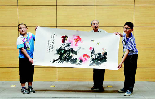 5月16日上午,菏泽知名老新闻工作者高尚潮、画家李明夫妇新作捐赠仪式在市图书馆举行。当天,夫妇二人向市图书馆、牡丹晚报小记者捐赠了他们的新作《守望笔谭》、专著《滚笔牡丹画技法》等书籍,还专门为牡丹晚报小记者中心创作了画作《少年强则强》。