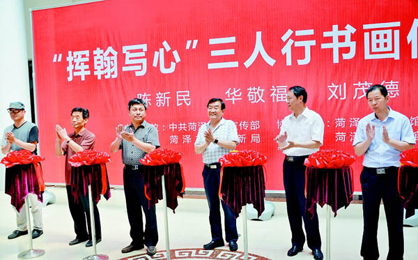 近日,由菏泽市委宣传部、市文广新局主办,市博物馆、市美术馆协办的“挥翰写心”三人行书画作品展在菏泽市博物馆隆重举行(上图)。