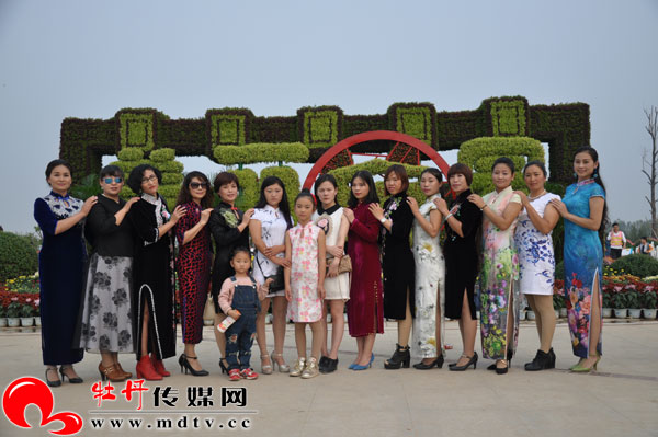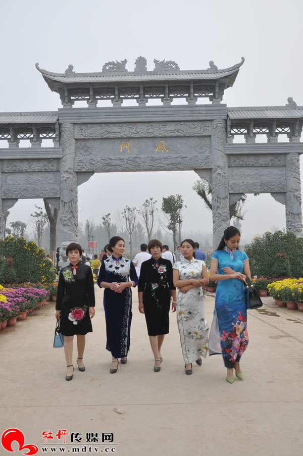 10月18日,国之韵旗袍委员会东明分会会长黄桂莲与其部分会员20余人在牡丹形象大使范雪倩的陪同下,一起参观了牡丹园及牡丹园首届菊花艺术游览节。云髻高盘、素手擎伞、旗袍裹身的旗袍爱好者,踩着优雅碎小的莲步展示风采。从传统版到现代改良版,旗袍色彩缤纷,花纹、颜色各异,衬托出女性的端庄娇美。淡雅隐逸的秋菊与优雅婉约的旗袍女子呈现出一道尽美的景致。举手投足间流露出温婉的韵味,引得游客们啧啧称美,纷纷要求合影留念。