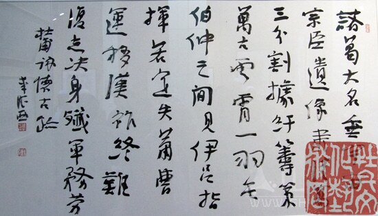 李德西先生是我市曹县人,出生于商丘,成长、工作于青海,退休后定居于徐州,系书法家协会会员,青海省书法家协会副。德西先生自幼热爱书法艺术,历经由“痴迷”到“觉悟”的苦修,早早的在书坛扬名立万,铸就了一段不老的书坛传奇。客居青海半个世纪的经历,使其书法除了兼具齐鲁、中原书风淳朴厚重之外,又增添了西部自然豪迈之气度;其书法作品的内涵一步步锻造的豪放而不失稳健,大方而不失朴素。