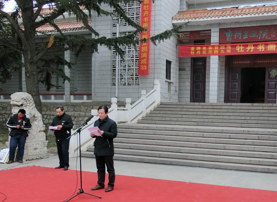 1月28日上午,爱新觉罗. 溥杰书画研究院菏泽分院以“老窖香四海,牡丹花开醉九州”为主题的“牡丹专题书画展”在曹州书画院盛大开展。市人大原秘书长李顺广、市原副秘书长杨龙田、区人大原副主任胡化民、牡丹区委统战部常务副部长乔廷华、区委宣传部副部长区文联张丽、书画家王宗普、王继星、孙念亮等及社会各界书画爱好者近300余人参加了开幕式。