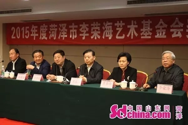李荣海先生首先对菏泽市领导和社会各界对菏泽市李荣海艺术基金会关心、参与和支持表示衷心感谢!李荣海深情地说,成立李荣海艺术基金会的目的就是为了回报家乡、回报社会,专项基金用来扶持书画后起才俊,帮助经济条件下困难的艺术人才走向成功之路。