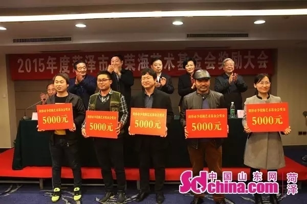 山东网菏泽频道3月26日讯 (记者 程功 志刚 常良)3月26日下午,2015年度菏泽市李荣海艺术基金会奖励大会在柏青大酒店隆重举行。菏泽市委常委、宣传部长王永江,市副市长黄秀玲,市政协副付守明,菏泽学院原党委书记张存金,书画艺术家李荣海及新闻媒体和获奖作者、社会各界人士等近百人出席奖励大会。本次评奖评选自2015年以来涌现出来的荣获全国全省书画比赛大奖的菏泽优秀书画艺术人才,16人荣获20奖项。