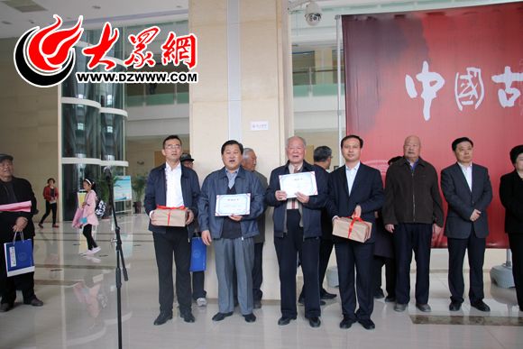 菏泽市图书馆支部书记、副馆长张伟胜向捐赠者颁发捐赠证书