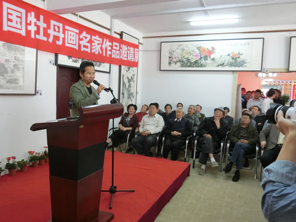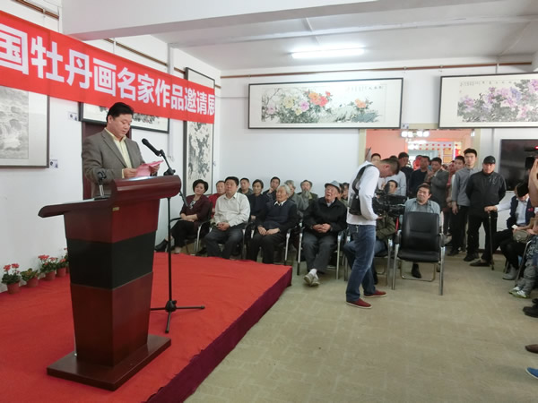 4月19日上午,正值菏泽第25届国际牡丹文化旅游节盛会之际,由菏泽市美术家协会、山东牡丹书画院主办,山东福汉集团、谢孔宾书法艺术研究院承办,山东将军书画院菏泽分院,菏泽中山书画院协办的“花开富贵 —牡丹画名家邀请展”在菏泽文化城隆重开展。此次参展的牡丹画家有张琦、孙建东、王进、李子玉、李同安、李明晋、丁远远,共展出牡丹画作品60余幅。他们笔下的牡丹婀娜多姿、争奇斗艳、构思精巧、形似神俏、极富笔情墨趣。这些画作,主题突出,有强烈的艺术感染力。把客观的自然之美与主观的思想相结合,达到情景合一。准确把握不同形态的牡丹面貌,并且能在情景交融中体现出转瞬即逝的情趣。创造了清新灵妙、格调高雅的鲜明格局。体现了画家情系家乡,热爱这方沃土的赤诚之心,表达了作者对伟大祖国的美好祝愿。