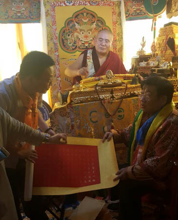 5月18日上午十时,活佛金刚法王召见,与前来进行文化交流等相关活动的蒙古国任总统奥其尔巴特,总统特使斯琴高娃和在京的友好人士相聚在北京万佛堂。同北京京墨斋书画院王院长,书法家肖旭东畅叙并合影留念!